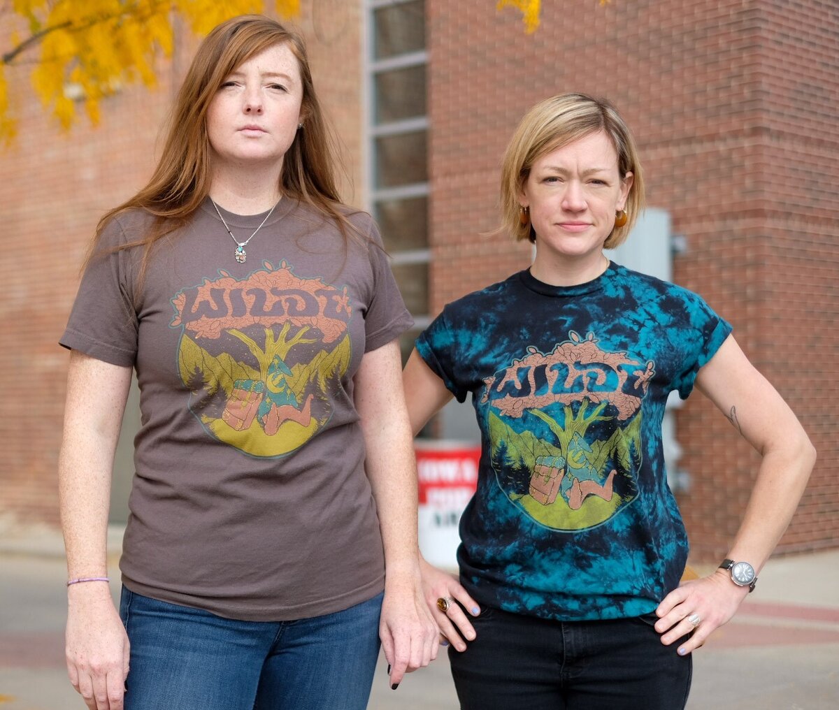 Both color variations are unisex cut shirts, printed on 100% cotton. The tie-dyed Tramp shirt is printed on Dyenomite Crystal and the grey Tramp shirt is printed on a Comfort Colors dyed garment.